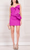 Vestido mini, strapless, detalle de olanes al frente, corte al cuerpo y cierre invisible.
