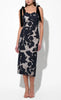 Vestido midi de terciopelo, tirantes gruesos con detalle de moño, corte al cuerpo, abertura posterior y cierre invisible.