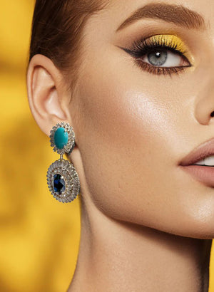 Aretes hechos a mano en Madrid con cristales y perlas swarovski, baño de oro.